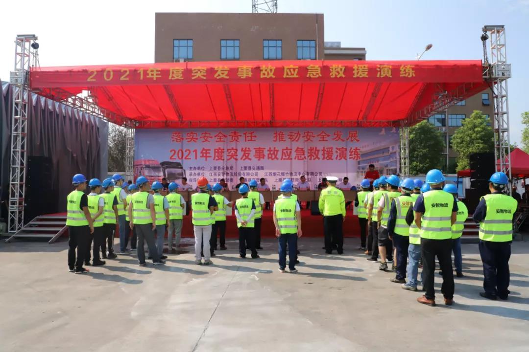 為深入開展2021年安全生產月活動,全面落實安全生產主體責任,7月30日上午,由上栗縣應急管理局局、上栗縣交通局主辦,江西安智物流股份有限公司、江西煙花爆竹物流中心有限公司承辦,縣衛(wèi)健委、縣交警大隊、縣消防救援大隊、縣運管所等相關部門單位協助的2021年度突發(fā)事故應急救援演練在江西煙花爆竹物流中心舉行。副縣長、縣安委會常務副主任王均洪到現場指導。