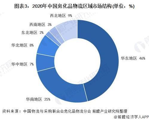 目前國(guó)內(nèi)?;肺锪髌髽I(yè)90%以上的客戶為化工企業(yè),通過(guò)將上游企業(yè)的原材樣運(yùn)輸給下游加工企業(yè)來(lái)立足,市場(chǎng)消費(fèi)企業(yè)大部分集中在東沿海省份,該區(qū)域石化加工類(lèi)企業(yè)更為發(fā)達(dá),華東地區(qū)和華南地區(qū)合計(jì)占據(jù)著全國(guó)70%以上的市場(chǎng)比例。?;菲髽I(yè)區(qū)域分布與服務(wù)主體分布趨勢(shì)接近,東南沿海分布密集。